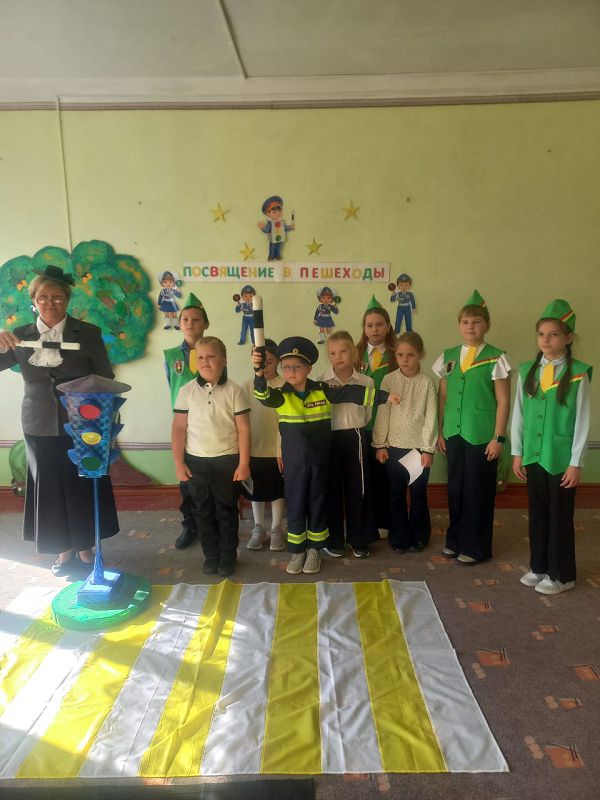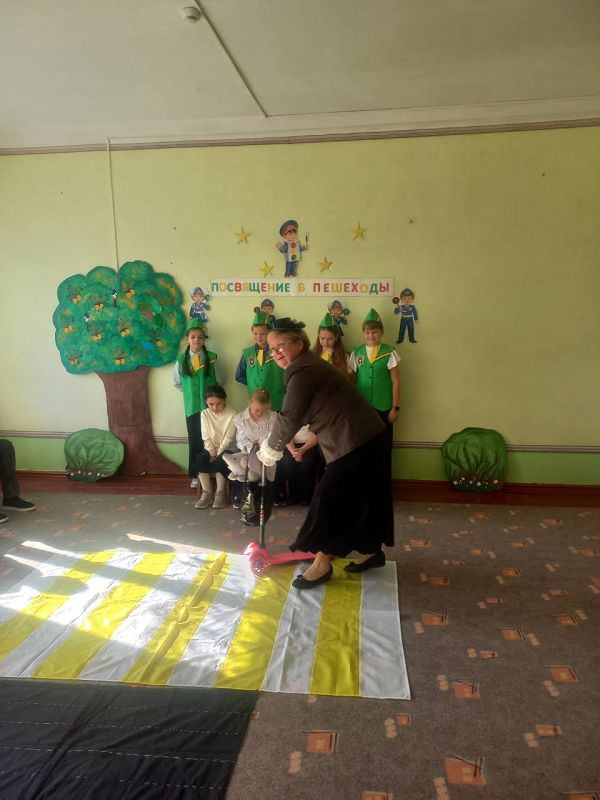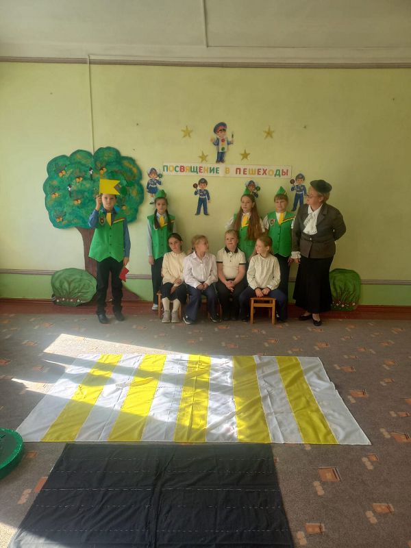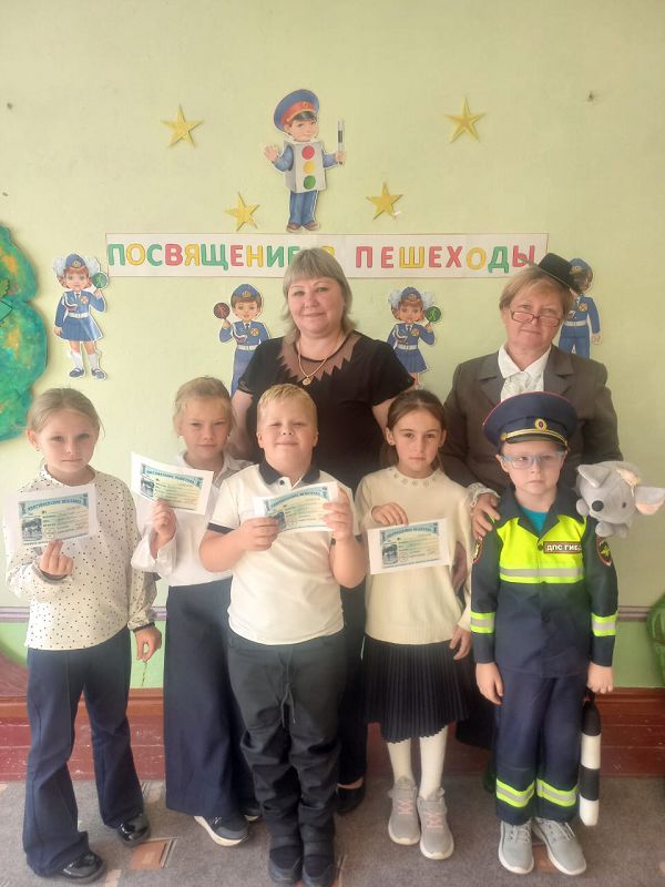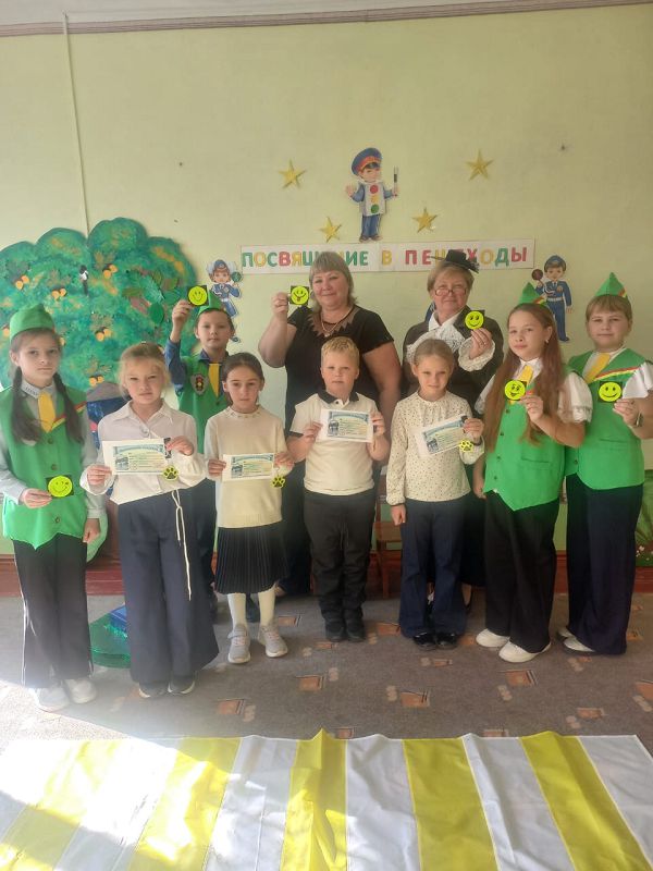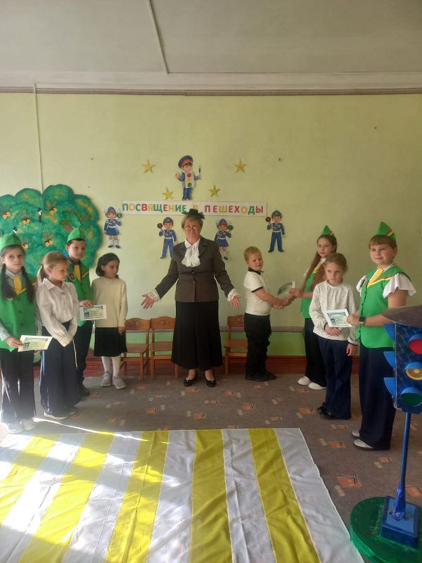 ЮИдовцы 3,4 класса вручили ребятам 1 класса удостоверение пешеходов, а Шапокляк став исправным пешеходом подарила брелки и смайлики.