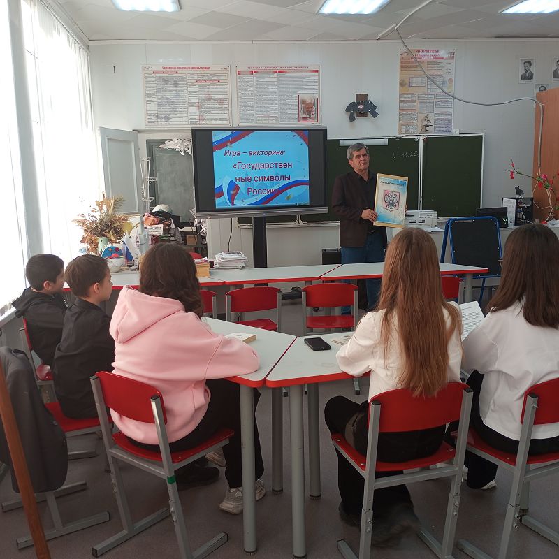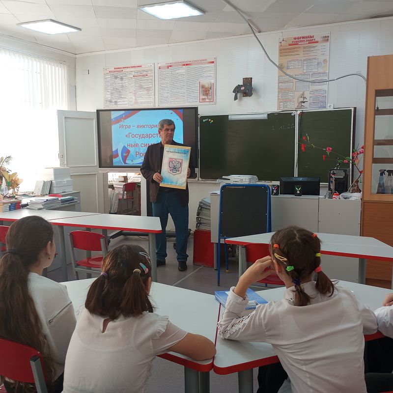 В преддверии Дня Государственного герба Российской Федерации в школе состоялось увлекательное и познавательное мероприятие — деловая игра «Государственные символы», участником которой стал 9 класс.