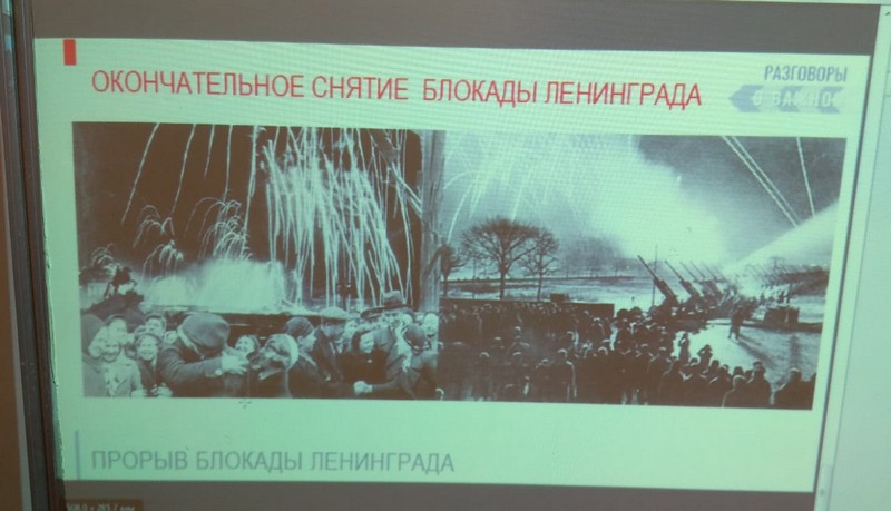 16 января было проведено внеклассное занятие «Разговоры о важном» на тему: «Прорыв блокады Ленинграда». Ребята начальной школы узнали о важнейшем событии Великой Отечественной войны – блокаде Ленинграда, познакомились с фактами о жизни детей блокадного города. На занятии были использованы видеофрагменты, презентация, была организована работа с информацией.
