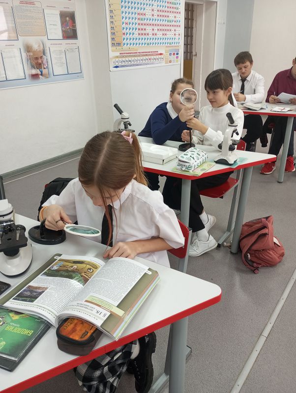 Сегодня 20 ноября в 5 классе на уроке биологии прошла практическая работа "Правила работы с микроскопом". Школьники познакомились с устройством увеличительных приборов, используемых в биологии, и, используя оборудование Точки Роста, изучили микроскопическое строение разных живых объектов и готовых микропрепаратов.