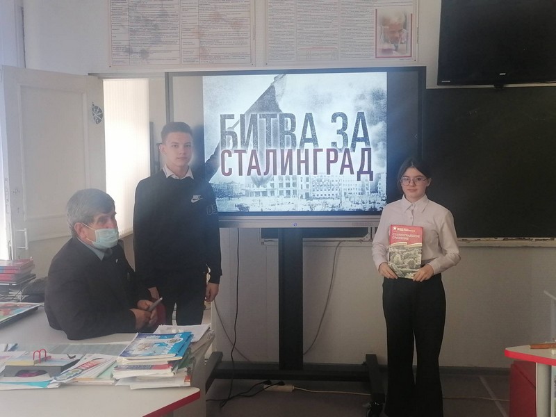 Далее Иван Алексеевич рассказал своим ученикам о роли и значении Сталинградской битвы в ходе 2-ой мировой войны. Он обратил внимание учащихся на то, что лучшие нравственные качества, проявленные нашими предками, и совершенный ими подвиг, не могут и не должны быть забыты со временем, с целью воспитания чувства патриотизма, гордости за свою страну.