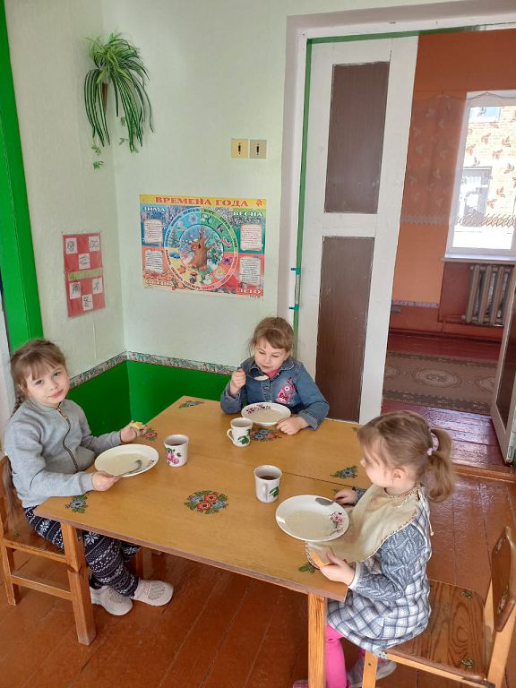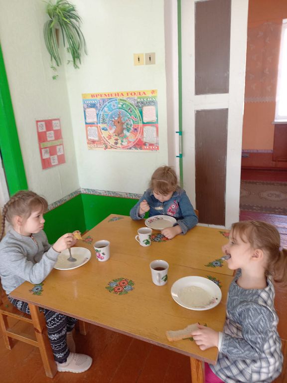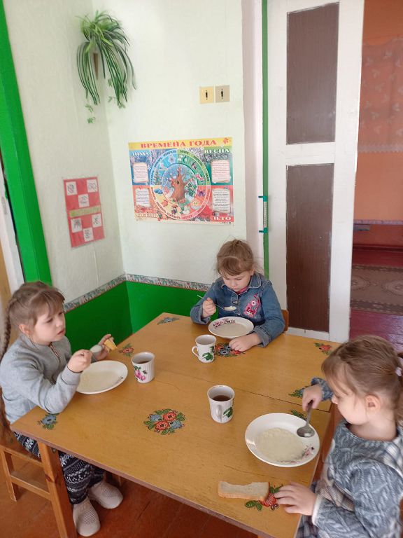 Утро в садике начинается с завтрака, с вкусной каши. Дети старательно набирают в ложку кашу и аккуратно, чтобы не проронить ни капли, несут ее ко рту.