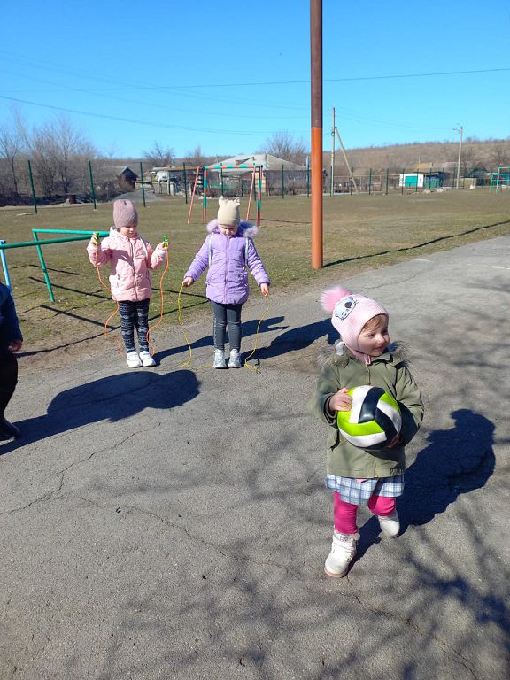 Ну а затем началось самое любимое- прогулка на свежем воздухе. Сегодня игры во время прогулки были связаны с мячиком и прыгалками.