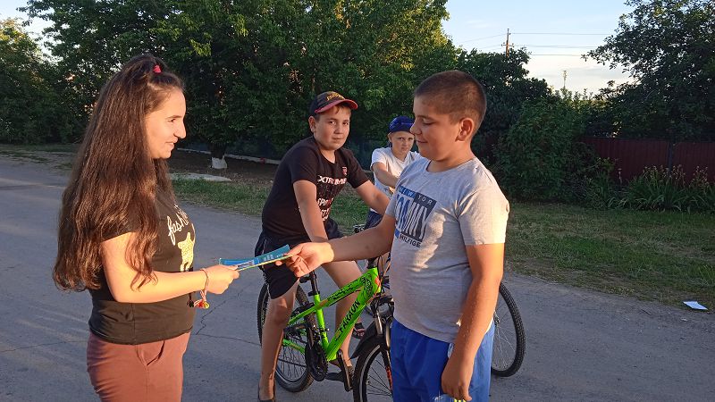 Завершилась игра и предложили памятки раздать прохожим и родителям.