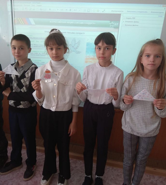 17 октября прошел в начальной школе Всероссийский урок Мужества «Ратная слава героев Российской земли». Ребята просмотрели презентацию о героях Великой Отечественной войны и защитниках Украины. Данное мероприятие направлено на поддержку военнослужащих, участвующих в специальной военной операции. Закончился урок акцией «Письмо солдату».