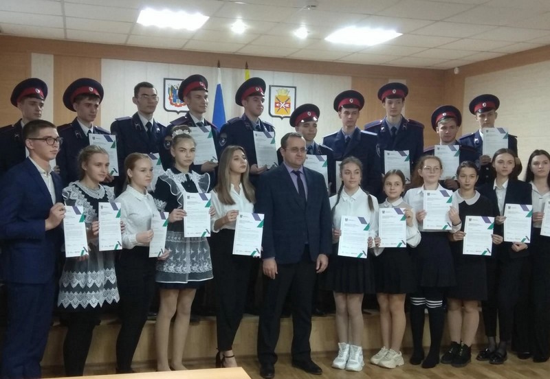 2 декабря в здании Администрации Тацинского района состоялось награждение областными грамотами за активную волонтерскую деятельность учащихся района. Выпускница нашей школы Попова Анастасия также получила грамоту. Вручил волонтёрам грамоты Роман Павлович Курличенко, первый заместитель Главы Тацинского района.