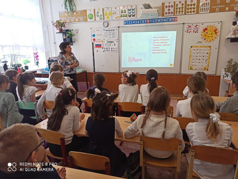 7 марта в начальной школе прошла игра-викторина для девочек, посвященная Международному женскому дню 8 марта. В викторине принимали участие смешанные команды из девочек 1-4 классов: «Роза», «Колокольчик» и «Ландыш». Вопросы были разделены на категории: «Юные хозяюшки», «Маленькие модницы», «Мальчики из сказок», «Сказочные девочки», «Букетик для мамы» и «Этикет». Игра закончилась со счетом 6:6:4.