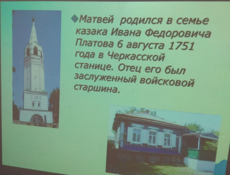 21 апреля для учащихся начальной школы было проведено мероприятие, посвященное 270 - летию М.И.Платова.