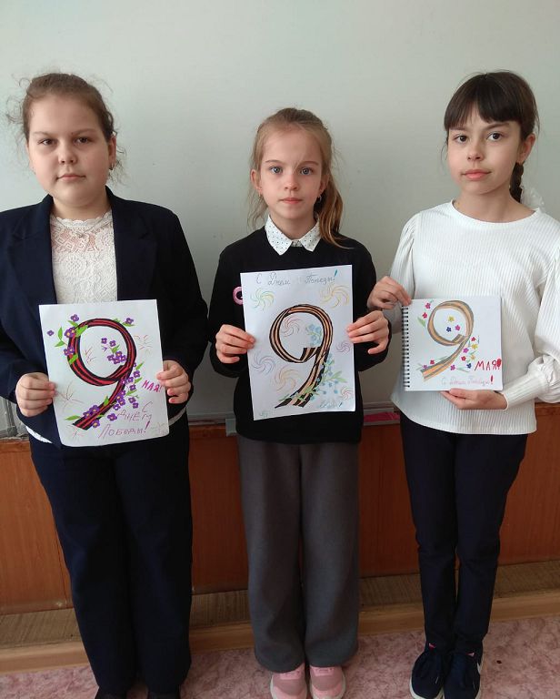 В честь праздника Победы в Великой Отечественной войне 26 апреля в начальной школе была организована тематическая выставка рисунков на тему: «Салют, Победа!» Ребята изобразили картины сражений, Вечный огонь, солдат-освободителей, белых голубей, салют и т.д.