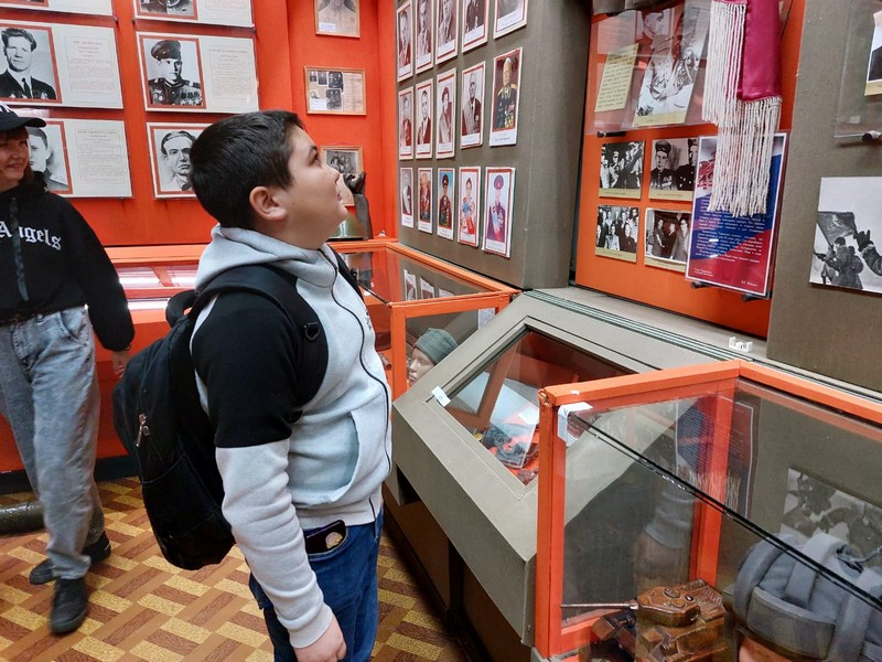 В целях формирования гражданско-патриотических чувств, знакомства детей с историей района 28 апреля учащиеся 5 и 7 классов с классным руководителем Шеваковой Екатериной Ивановной осуществили поездку в ст. Тацинскую, чтобы посетить музей Боевой и Трудовой славы. Школьники познакомились с экспонатами Музея, военной формой, письмами, наградами и орудиями воемен Великой Отечественной войны.