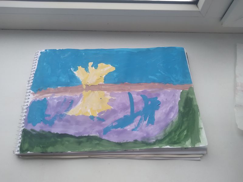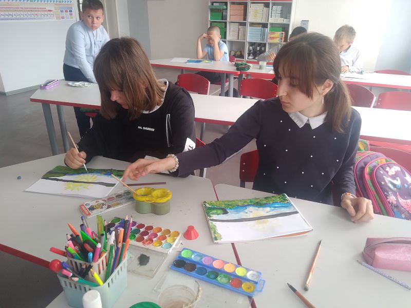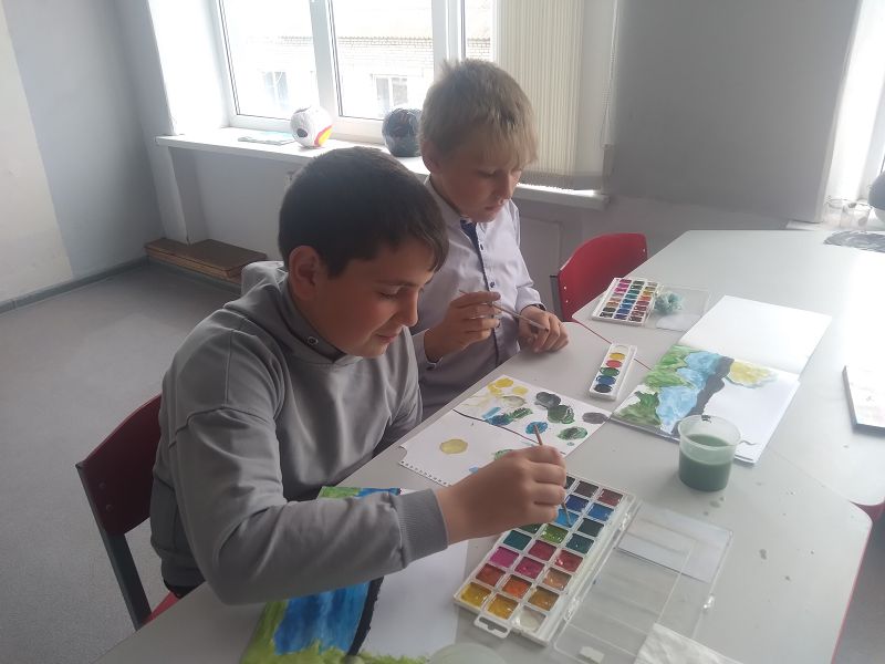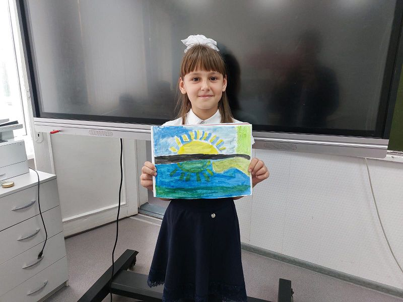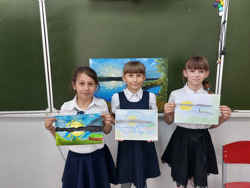 Школьники предприняли попытку скопировать картину, попытались передать всю красоту величественный реки.