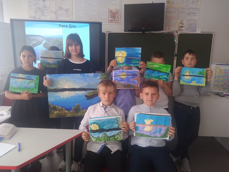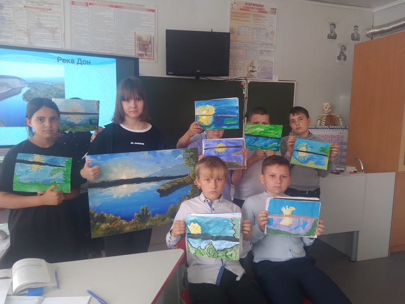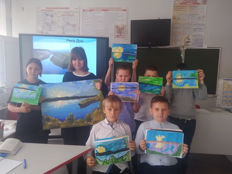 Сегодня в нашей школе отметили праздник- день реки Дон. Учащиеся 5- 8 классов вместе с Шеваковым Андреем Ивановичем узнали о новом празднике, о необходимости беречь родную природу и относиться к ней бережно и с любовью. На занятии кружка " Волшебные краски" учитель ИЗО Шевакова Екатерина Ивановна показала свою работу - изображение Дона, выполненного на холсте.
