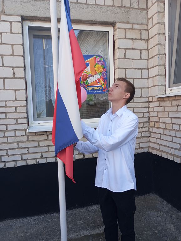 Почетное право поднять Государственный флаг Российской Федерации предоставлено лидеру школы Мелишкову Семену.