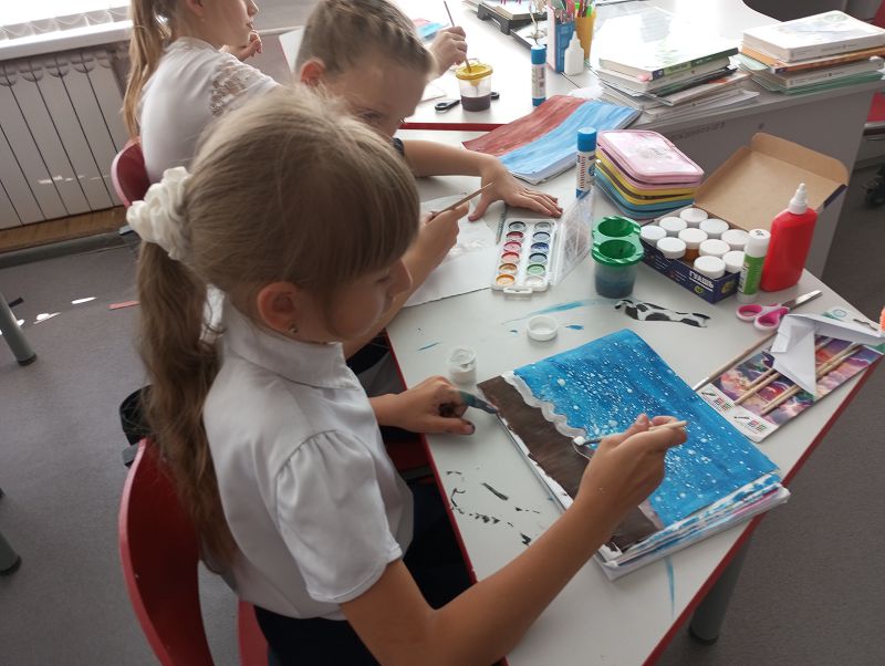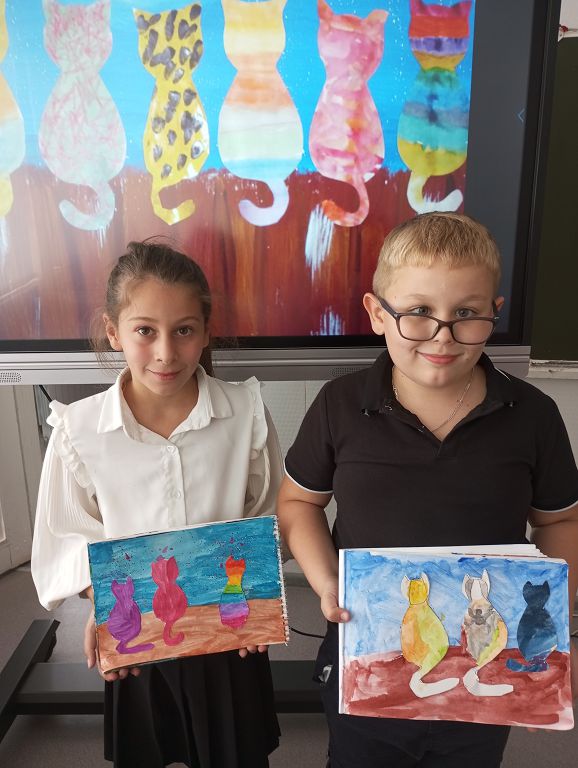 Сегодня на занятиях " Волшебные краски" была поднята проблема бездомных животных. Ребята рассуждали на тему причин бродяжничества, способы устранения этого явления. Затем школьники выполнили работу: рисунок с элементами аппликации.