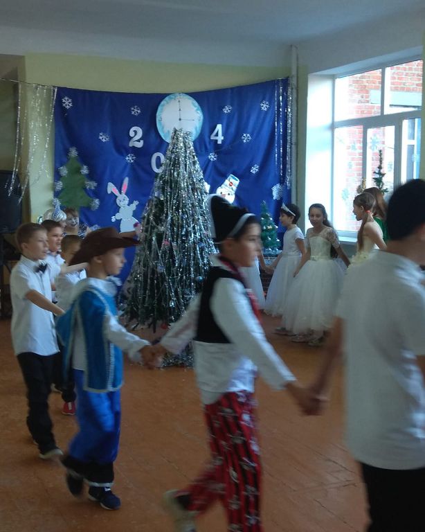 Сегодня состоялся новогодний утренник для ребят начальной школы. С появлением Деда Мороза начался волшебный праздник с веселыми песнями и зажигательными танцами, дружными хороводами вокруг красавицы-елки.