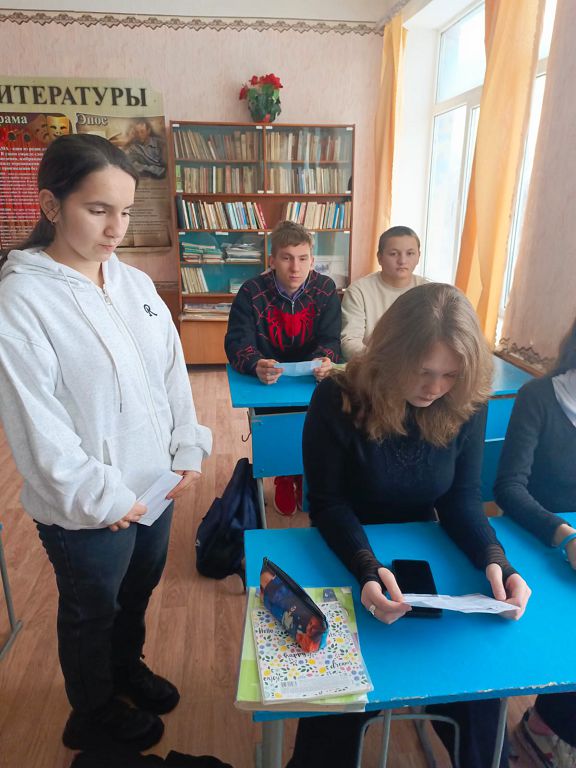 В рамках профориентационной работы в школе состоялась встреча учащихся 9 класса с учащейся Константиновского педагогического колледжа Халиковой Нарминой. Студентка рассказала о том, какие профессии смогут получить в данном учреждении обучающиеся, какие условия обучения в колледже. Нармина ответила на вопросы школьников, заинтересовавшихся данным направлением обучения.