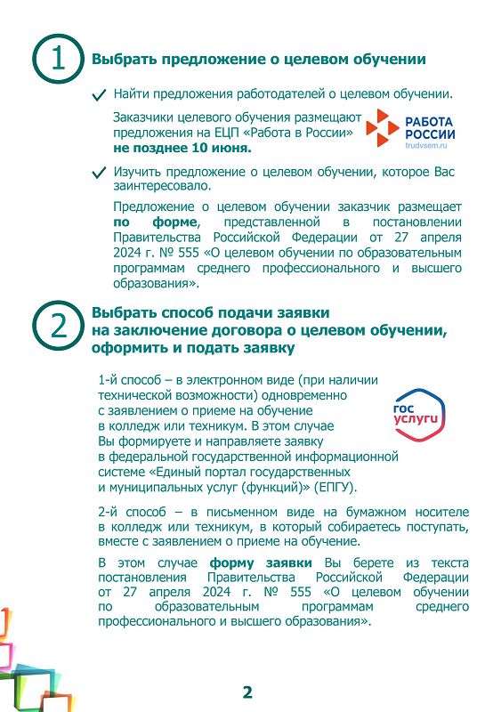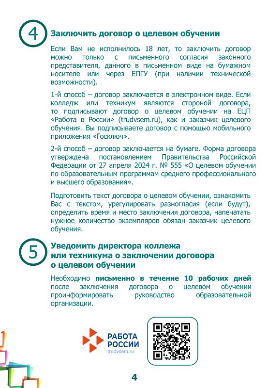 Памятка об организации целевого обучения для абитуриента, поступающего на обучение по образовательным программам среднего профессионального образования.