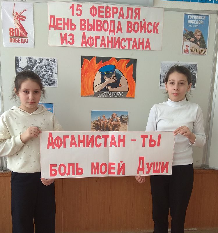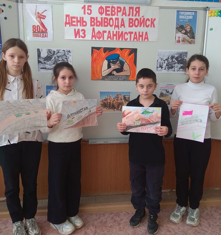Сегодня для учащихся 4 класса классный руководитель Попова Н. В провела внеклассное мероприятие "Афганистан - ты боль моей души", посвященное выводу советских войск из Афганистана. 15 февраля – особый день. День памяти о россиянах, исполнявших служебный долг за пределами Отечества. Эта памятная дата установлена в честь воинов-интернационалистов, которые выполняли свой боевой долг за пределами границ своей родной страны.