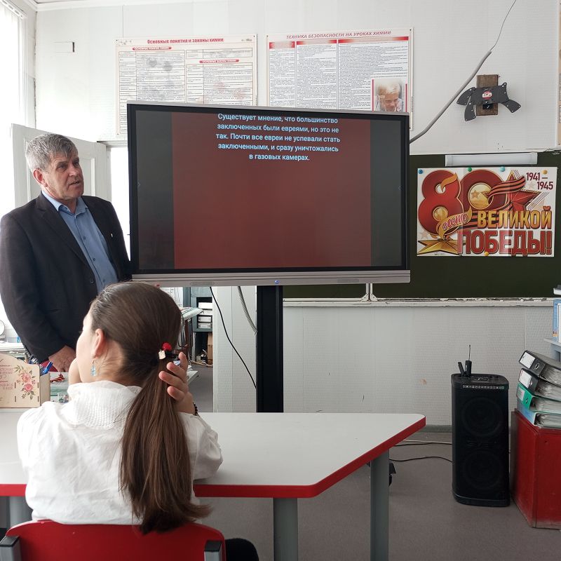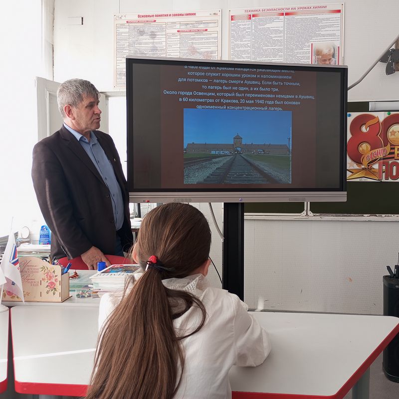 Учитель истории Шеваков Иван Алексеевич провел инфочас, посвященный 80-летию освобождения узников концлагерей от фашистских зверств.